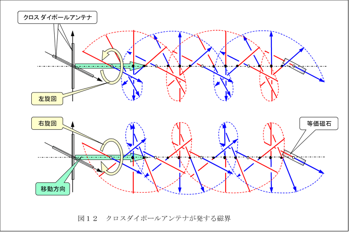 図12は、クロスダイポールアンテナが発する円偏波された磁界の様子を コマ送りにして示した図であり、