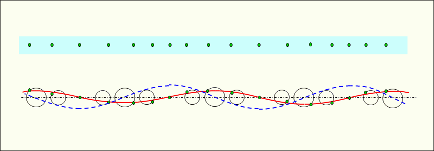The vibration simulation circles in the standing waves are corresponding in size to their respective locations.