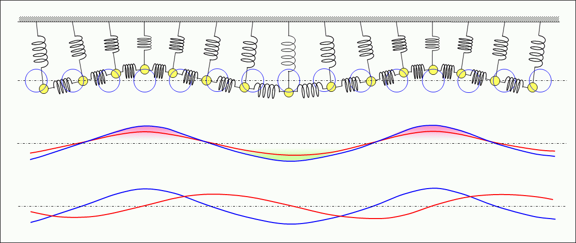 For reference, if the weights and springs in the above model correspond to the Proximity effects between free electrons in a conductor, they can be applied to describe the current formed by the longitudinal waves of electrons described in the gForm of currenth section above.