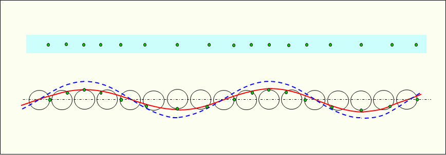 先述したような振動模擬円を使用し、粒子の動作を大きく拡大して縦波(疎密波)の様子を見やすくして示す。