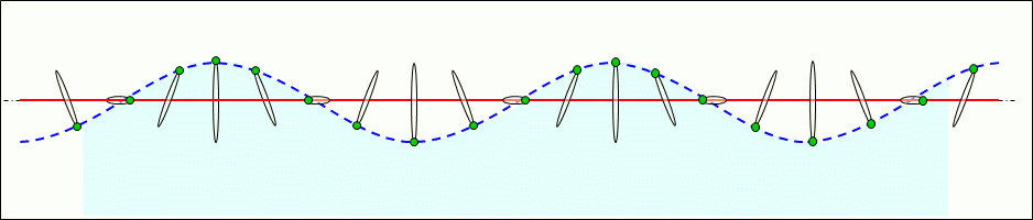 上記縦波と異なり構成粒子の動きは大きく、それぞれの振動範囲に対応して粒子が運動している。