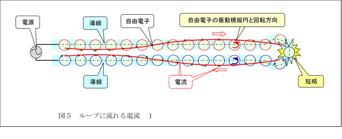 「電流の様子」に後述する自由電子の振動模擬円を使って示した。