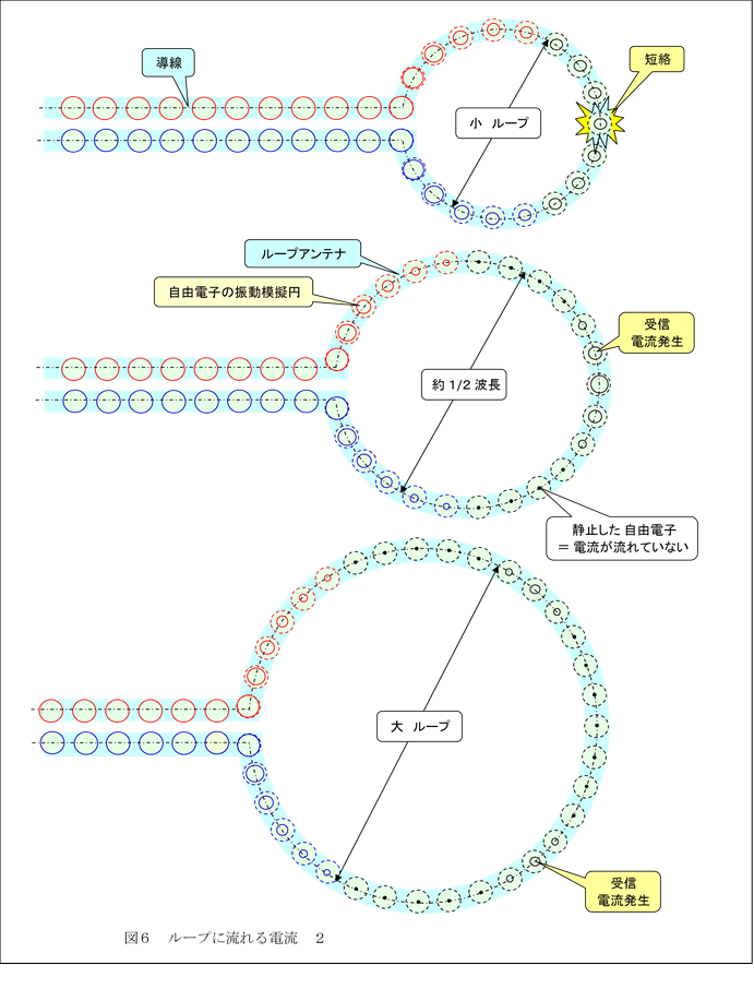 ループアンテナとして使用されるのは、図6の中段の直径が概ね1/2波長のループであって、